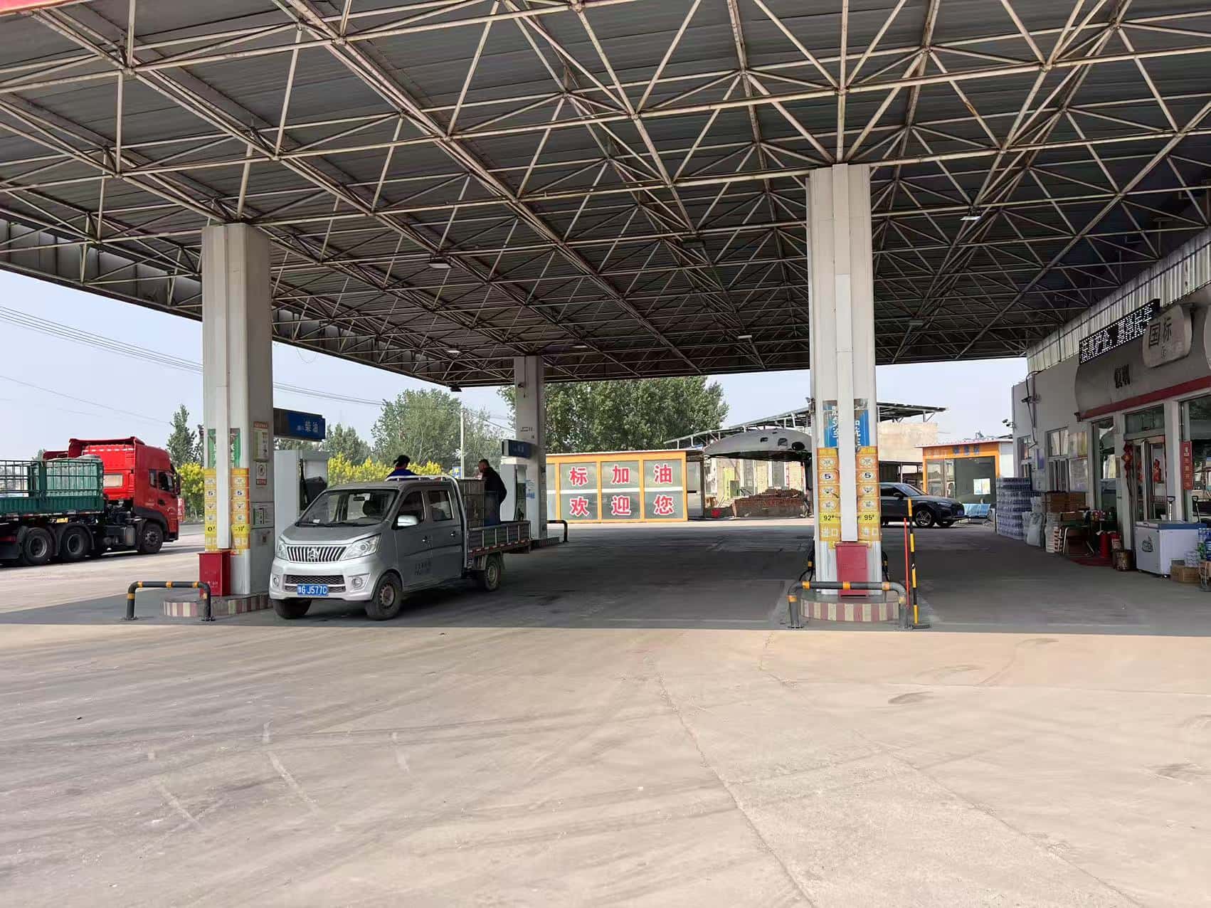 項目簡介 | 滑縣王莊鎮國標加油站,成立于2002年4月16日,地址位于滑縣王莊鎮S101省道南側,主要負責人:趙龍飛,類型:個人獨資企業,統一社會信用代碼:91410526737405715R。《成品油零售經營批準證書》,經營范圍為:汽油、煤油、柴油;《危險化學品經營許可證》許可經營范圍:乙醇汽油、柴油,有效期:2022年12月16日-2025年12月15日。 該站坐南朝北,該站站外東側為汽修門市,西側為閑置棚和閑置院子,二手車門市,南側為空地,北側為S101。自2022年12月取證以來,周邊環境未發生變化,站內總平面布置未發生變化。該站主要設備包括雙槍加油機4臺;油罐區有乙醇汽油罐2臺,柴油罐2臺,罐容量均為30m3,總容積為90m3(柴油折半計入)。根據GB 50156-2021《汽車加油加氣加氫站技術標準》第3.0.9條加油站的等級劃分,該站為三級加油站。該加油站汽油設備設置有油氣回收系統。 | |||