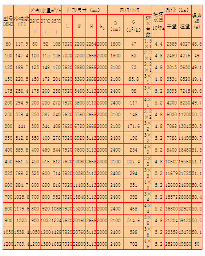 CDBHZ系列組裝式節(jié)能超低噪聲橫流式冷卻塔主要參數(shù)表