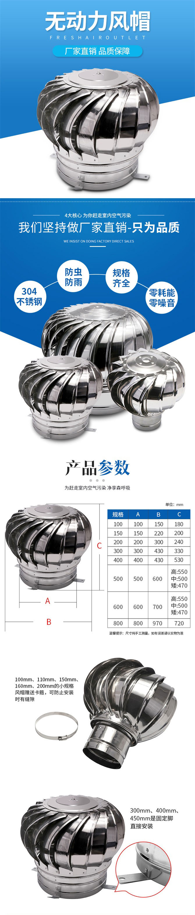 無動力屋頂風機可作建筑屋頂排風換氣,利用室內熱氣流上升,冷空氣下降的自然原理,安裝在屋頂加速熱氣的揮發達到換氣降溫的效果。適用于商業大型超市、農牧業、工業廠房農業養殖廠、構件廠;該風機無需耗電,只需空氣流動產生的動力達到排風換氣的目的,的優點是安裝方便,節省能源。