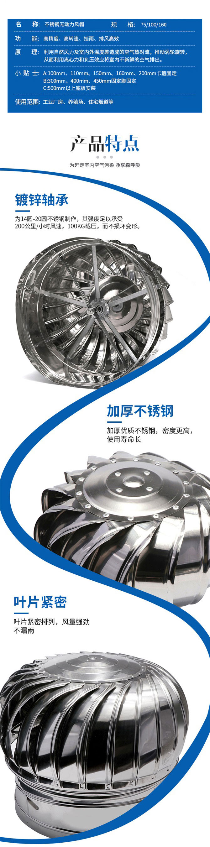 1、弧形風葉是經過科學的計算的結果,能嚴格保證工作狀態下絕不諱讓雨水侵入。排風效率高,只要在不低于0.2公尺的微風或室內外溫度差超過0.5℃,即可輕盈、有效地運轉。