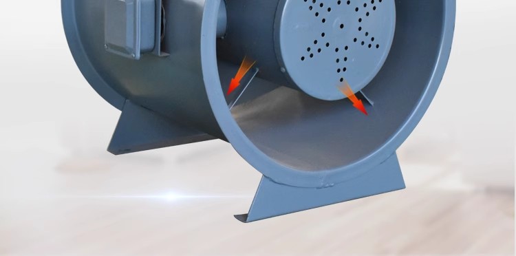 混流(斜流)風機,風壓系數比軸流風機高,流量系數比離心風機大,用在風壓和流量都“不大不小”的場合。它填補了軸流風機和離心風機之間的空白。同時具備安裝簡單方便的特點。